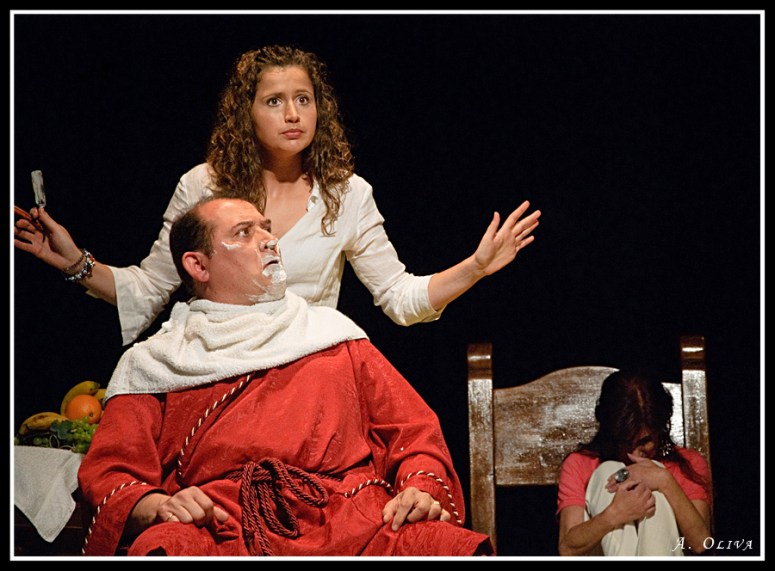 Miguel Simón y Esther Lastra en escena, al fondo Beatriz Toyos.