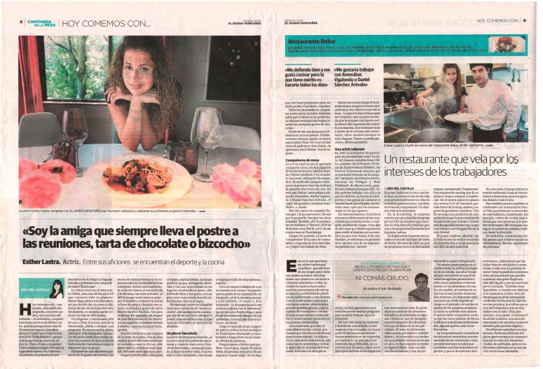 El pasado día 3 de septiembre Esther Lastra fue la protagonista del especial «Hoy comemos con…» del periódico El Diario Montañés.