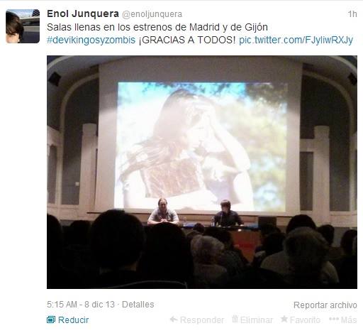 El pasado sábado 7 de diciembre tuvo lugar un pase especial en Gijón del cortometraje «De Vikingos y Zombis» , la proyección que incluía un coloquio con el director y algunos participantes de la película fue un éxito de asistencia.