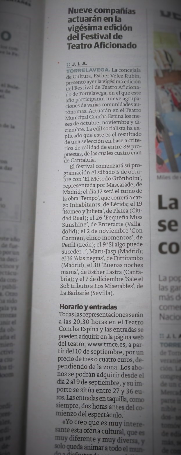 Un honor poder representar “Buenas Noches Mamá” en el teatro Concha Espina, dentro de uno de los Festival más prestigiosos a nivel nacional, el XX Festival de Teatro Aficionado de Torrelavega.
