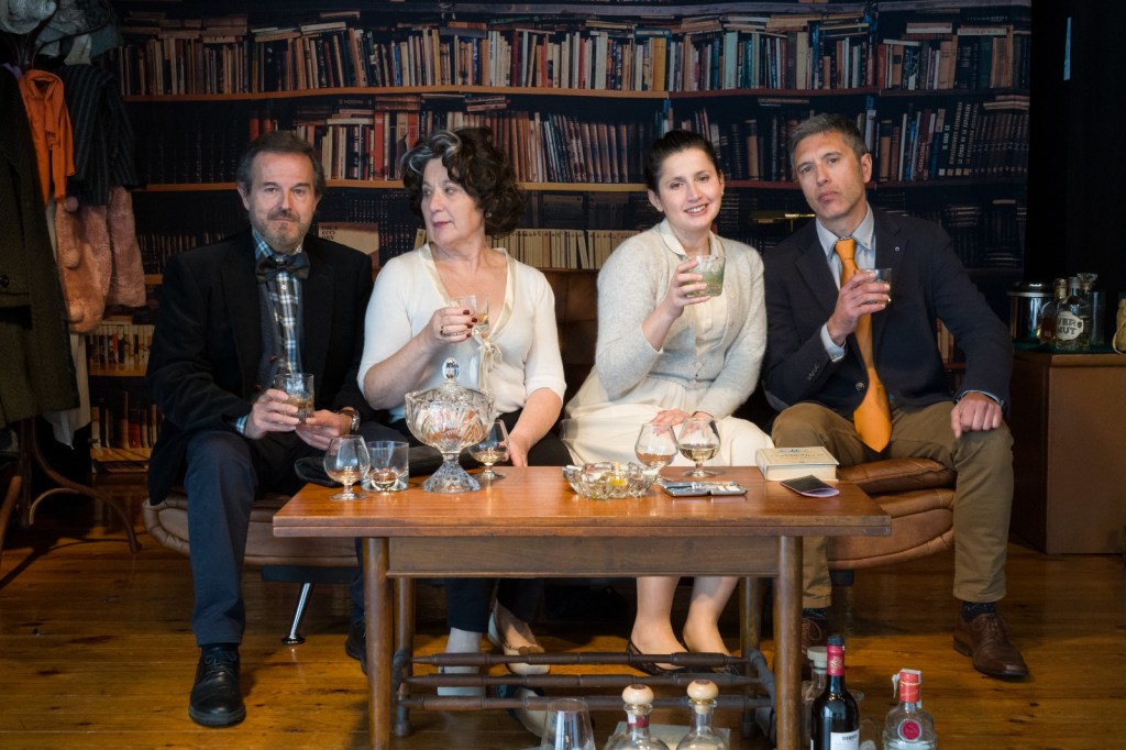 Una pieza ácida y feroz, donde dos refinados intelectuales y sus parejas se reúnen tras una fiesta para tomar la última copa, lo que comienza como una agradable velada, se va amenizando con alcohol y otros excesos, hasta desbocar en una cruenta batalla donde salen a la luz resentimientos y secretos.